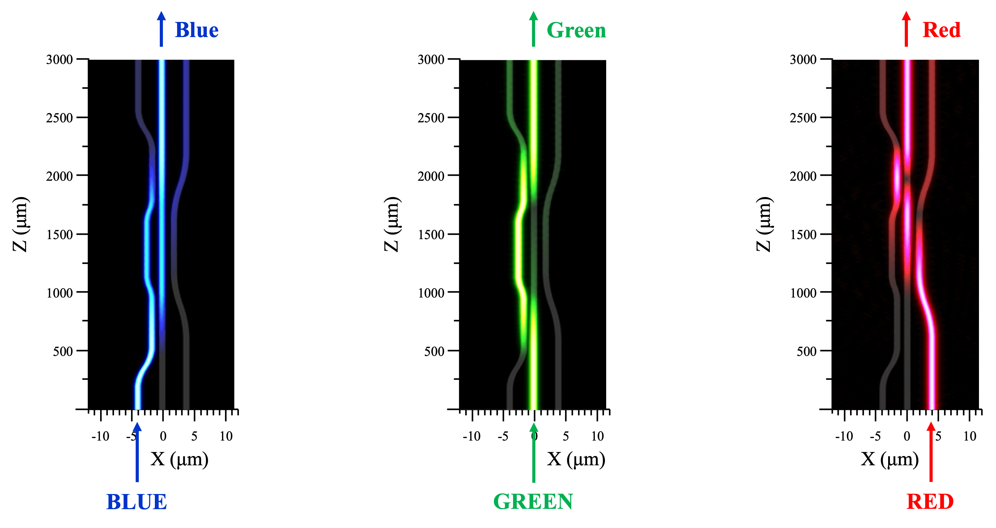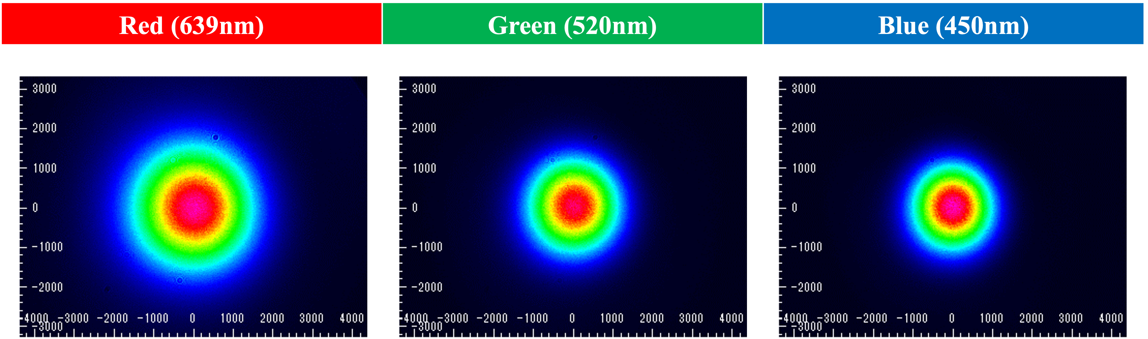 The light beam through the optical waveguide has a beautiful circular symmetrical shape.